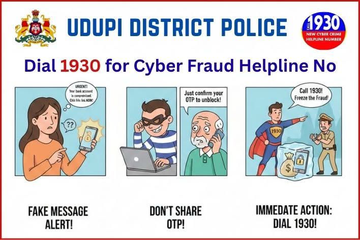 ಉಡುಪಿ: ಇತ್ತೀಚಿನ ದಿನಗಳಲ್ಲಿ ಸೈಬರ್ ವಂಚನೆ ಪ್ರಕರಣಗಳು ಹೆಚ್ಚಾಗುತ್ತಿದ್ದು, ಸಾರ್ವಜನಿಕರು ಹೆಚ್ಚಿನ ಎಚ್ಚರಿಕೆ ವಹಿಸುವಂತೆ ಉಡುಪಿ ಜಿಲ್ಲಾ ಪೊಲೀಸ್ ಇಲಾಖೆ ಮನವಿ ಮಾಡಿದೆ. ಬ್ಯಾಂಕ್ ಖಾತೆ ಹ್ಯಾಕ್…