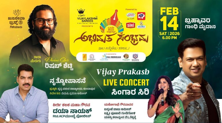 ಕುಂದಾಪುರ, ಫೆ.13:ಜನಸೇವಾ ಟ್ರಸ್ಟ್ ಗಿಳಿಯಾರು ಆಶ್ರಯದಲ್ಲಿ ಆಯೋಜಿಸಿರುವ ‘ಅಭಿಮತ ಸಂಭ್ರಮ’ ಸಾಂಸ್ಕೃತಿಕ ಕಾರ್ಯಕ್ರಮವು ಫೆಬ್ರವರಿ 14ರಂದು ಸಂಜೆ 6 ಗಂಟೆಗೆ ಬ್ರಹ್ಮಾವರದ ಗಾಂಧಿ ಮೈದಾನದಲ್ಲಿ ನಡೆಯಲಿದೆ. ಕಾರ್ಯಕ್ರಮದ…